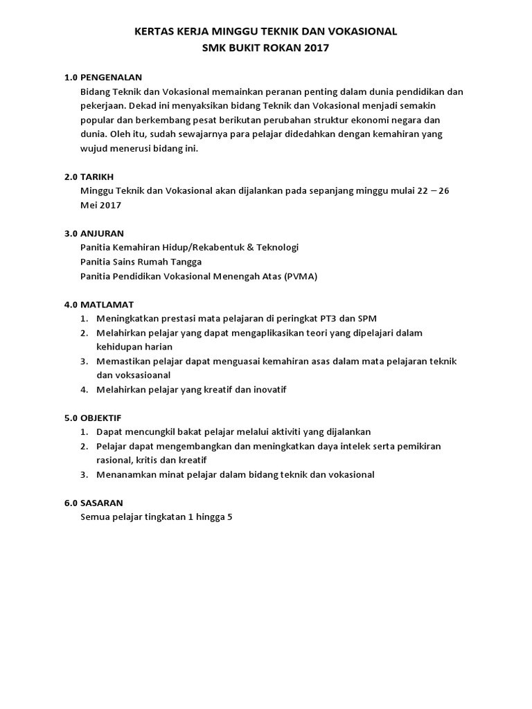 Contoh Kertas Kerja Minggu Teknik Dan Vokasional
