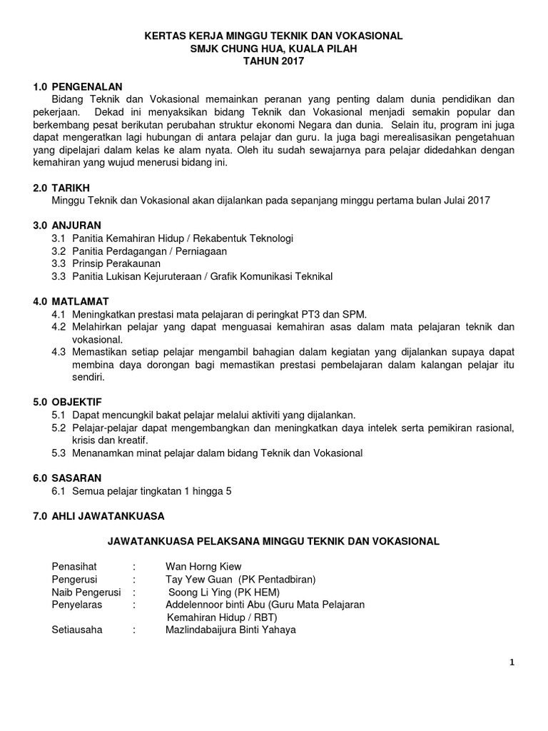 Kertas Kerja Minggu Teknik Dan Vokasional 2015 Smka Shoaw Pdf